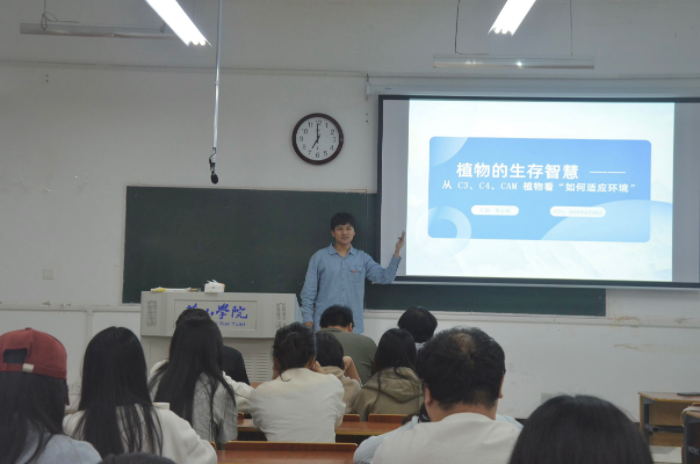 4月26日晚,365上市公司和生命与环境科学学院共同举办的《植物的生存智慧—从不同光合作用植物如何适应环境》科普讲座在文渊楼1108教室举办,生命与环境科学学院团委学生会主席殷方磊担任主讲。