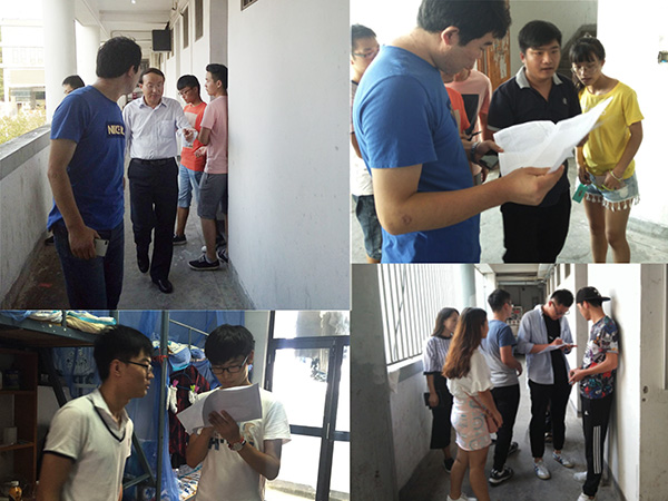 下午4时,来自我院四个专业的入党积极分子在大学生活动中心集合,各小组分别由党总支书记汪家庚,辅导员郑春梅、庆武、闫鹏辉带队,奔赴南区所有寝室,检查宿舍安全隐患。在检查过程中,带队老师和积极分子耐心细致,认真排查。在女生宿舍21栋,汪家庚每到一个寝室都嘱咐寝室无人时一定要保持电器处于关闭状态,并告知同学们使用大功率电器存在的安全隐患。针对宿舍卫生不达标的情况,领导老师提出整改要求。在男生宿舍11栋,看到广编专业的男生宿舍的精心装饰布局,院领导给予了肯定。