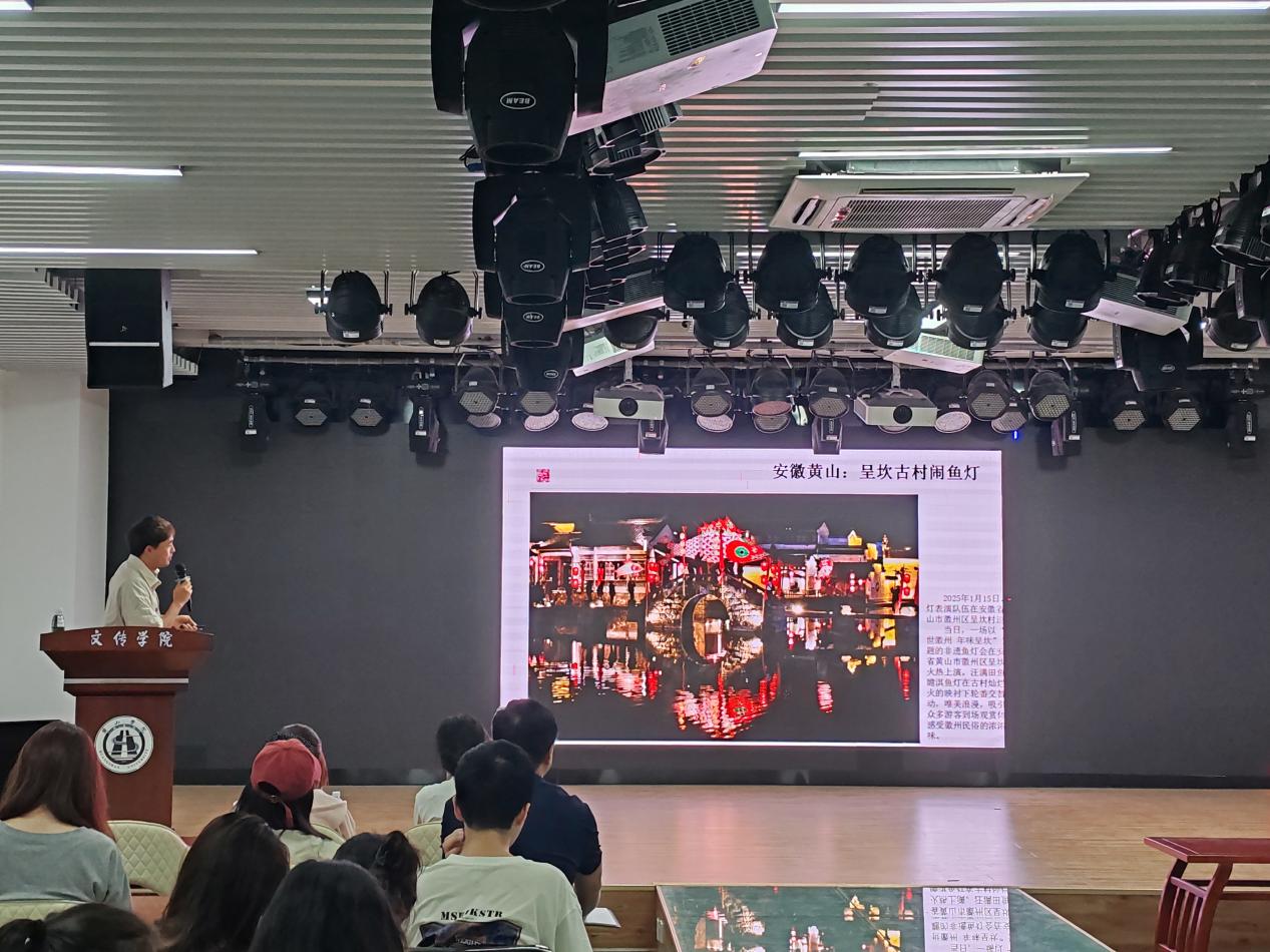 施亚磊从非遗摄影的意义、非遗民俗摄影、非遗技艺摄影三个方面展开讲述,以自己拍摄数十部在新华社、人民日报等国家主流媒体发表的徽州鱼灯、徽墨为摄影作品为案例,着重讲述对构图、光线的决定性瞬间处理,分享在非遗摄影中获得的宝贵经验,鼓励同学们做非遗传承的记录者和传播者。讲座中,施亚磊还分享个人摄制的多部短视频作品。