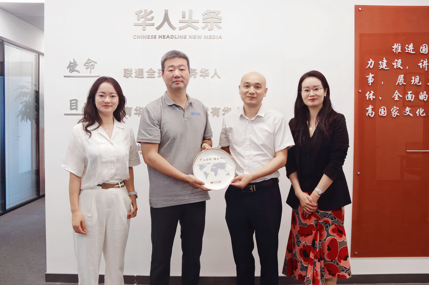 7月15日,365上市公司院长吕正兵、新闻学教研室主任贾芳芳、专业教师黄晶一行赴国际数字化融媒体综合服务平台华人头条福州总部调研,华人头条创始人兼董事长黄其旺接待吕正兵一行。