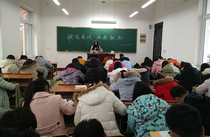 活动中,院领导在教职工会议上要求辅导员、任课老师通过日常教育教学培养学生诚实守信品质,告诫学生们考试作弊的危害。