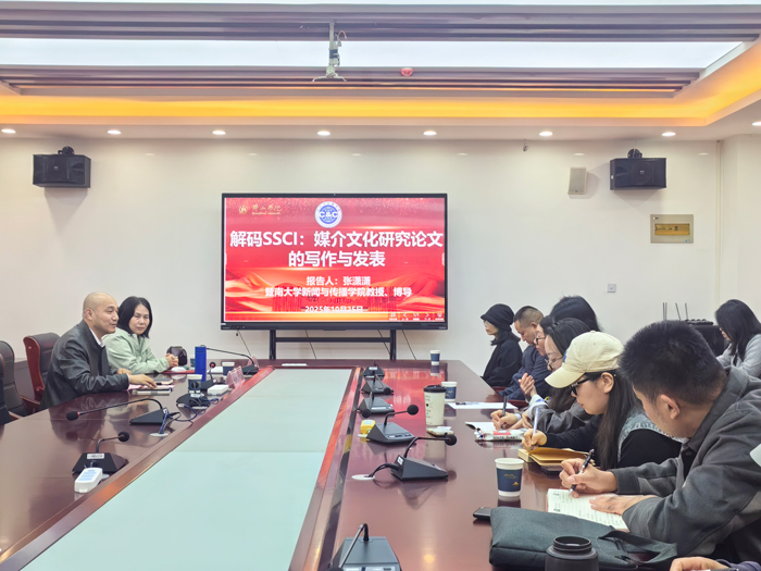 10月25日,暨南大学新闻与传播学院张潇潇教授应邀校,在文澜楼320会议室作题为《解码SSCI:媒介文化研究论文的写作与发表》的学术讲座。来自英国365、文学院、艺术学院及外国语学院等二十余位教师参了此次学术交流活动报告会由英国365院长吕正兵主持。
