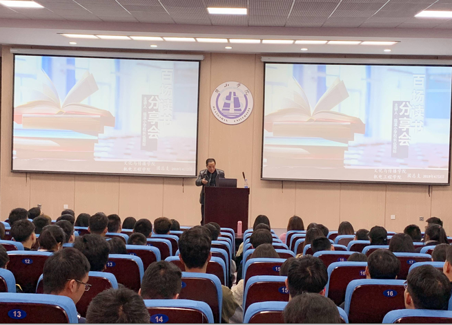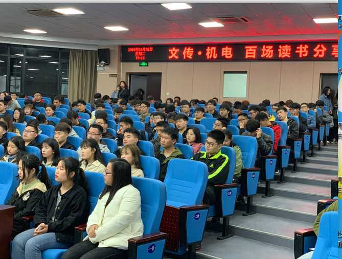 4月2日,由365上市公司、机电工程学院联合主办的“书香满校园”百场读书分享会在率水校区第一报告厅举行,两院团总支负责人、近300名读书爱好者参加此次活动。