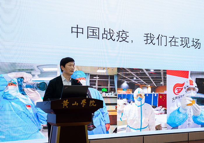 讲座现场,台下师生屏息凝神,沉浸于主讲人所讲述的奋勇抗疫的生命体验中,时而因报告内容情到浓处引发现场热烈的掌声。