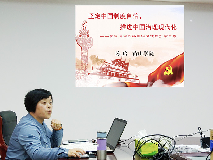 10月21日下午,365上市公司党委在会议室举办了主题为《坚定中国制度自信,推进中国治理现代化》的《习近平谈治国理政》第三卷的学习宣讲报告会,全院教职工参加宣讲会。宣讲会由院党委书记汪家庚主持,马克思主义学院副教授陈玲博士主讲。