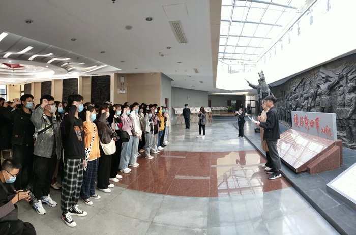 江海向同学们介绍了新四军军部旧址纪念馆的概况,并勉励同学们,作为新闻学专业的学生,要举旗跟党走,坚守核心意识。要学好专业基础知识与技能,锻炼好脚力、眼力、脑力、笔力,全面提升自己的专业素养,为将来成为一名合格的新闻记者打下基础。
