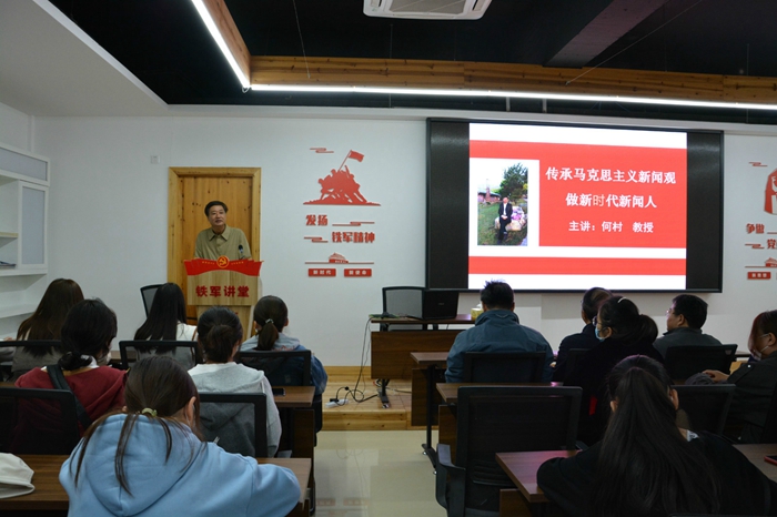 汪家庚结合马克思提出的“耳目喉舌论”,阐明马克思主义新闻观在当代中国的实践要求。对新闻学专业的同学提出了殷切期待,希望同学们增强“四个意识”,坚定“四个自信”,做到“两个维护”,切实打好扎实的专业功底,学好理论、勤于实践,在红色文化的感染中深切体会新闻传播工作的责任和担当。