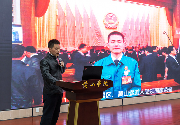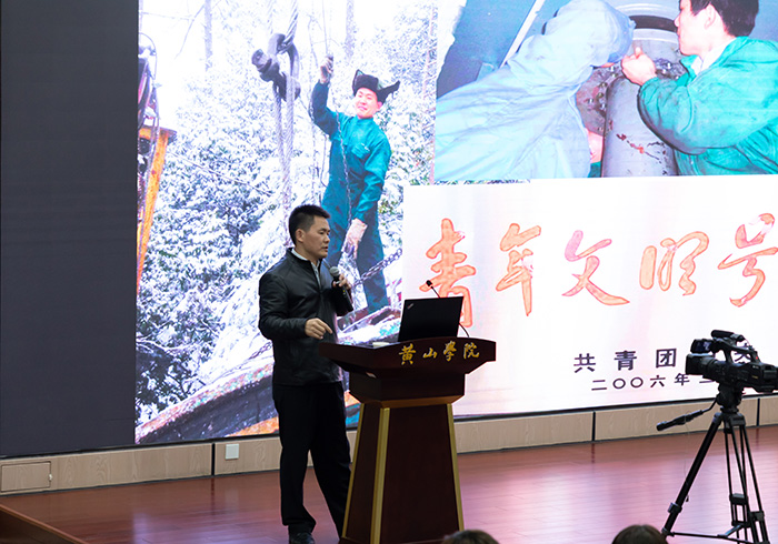 会上,姚文华分别从“勤能补拙”、“兴趣是最好的老师”、“积极进取,敢于争先”和“打破权威不唯上,低头钻研只唯实”等四个方面向在座师生讲述了他的维护管理黄山索道的点滴故事。他以其自身工作经历为例,鼓励在座同学要刻苦钻研、追求卓越、矢志拼搏、完善自我。最后姚文华以习近平总书记的金句“伟大出自平凡,平凡造就伟大”勉励同学们要坚定信念、珍惜光阴、脚踏实地、不懈奋斗,兢兢业业把日常的每一件事做好。