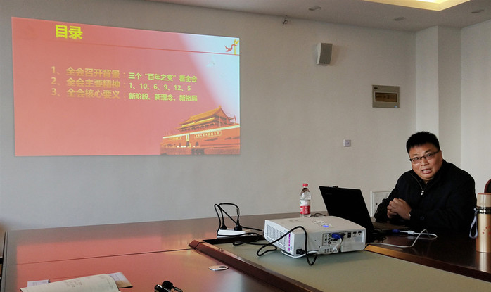 12月16日下午,365上市公司举办十九届五中全会精神宣讲报告会,宣讲会邀请马克思主义学院副教授朱哲恒博士主讲。英国365党委书记汪家庚主持宣讲会,全体教师参加宣讲会。