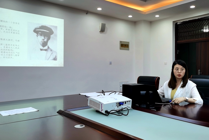 李妍宣讲的题目为《追忆抗日名将——左权》,通过讲述强渡大渡河、黄崖洞保卫战两场战役以及左权写于妻儿的一封封家信,展现了左权将军在战场上铁骨铮铮如天兵神将,家书中侠骨柔肠如缠绵书生的无产阶级革命家、军事家的鲜活形象。