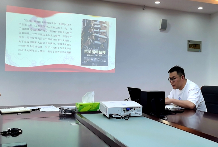 庆武以《抗美援朝 保家卫国》为题,阐述了在波澜壮阔的抗美援朝战争中,英雄的中国人民志愿军发扬祖国和人民利益高于一切、为了祖国和民族的尊严奋不顾身的爱国主义精神,英勇顽强、舍生忘死的革命主义精神,不畏艰苦困难、高昂士气的革命乐观主义精神,为了完成祖国和人民赋予的使命、慷慨奉献的革命忠诚精神。