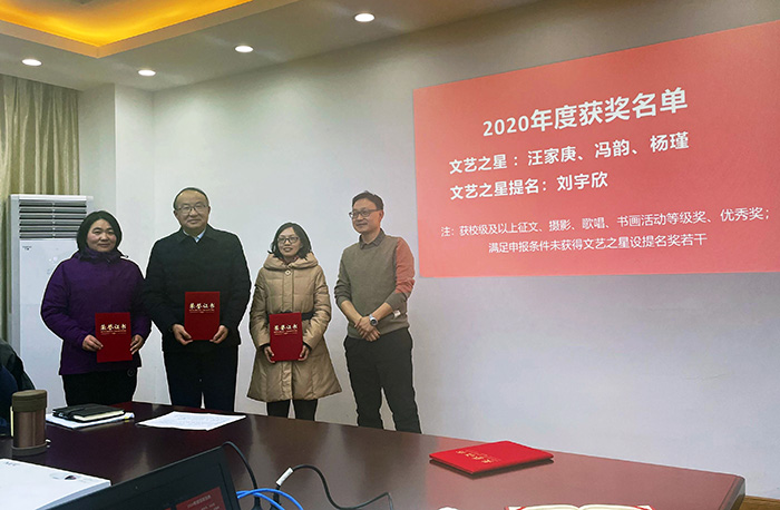 为了激励教职工踊跃参加工会活动,丰富教职工业余文化生活,365上市公司分工会于2022年1月5日启动2021“工会之星”评选工作并为2020年获得“文艺之星”、“体育之星”教职工颁奖。学院分工会教职工会员参加会议。