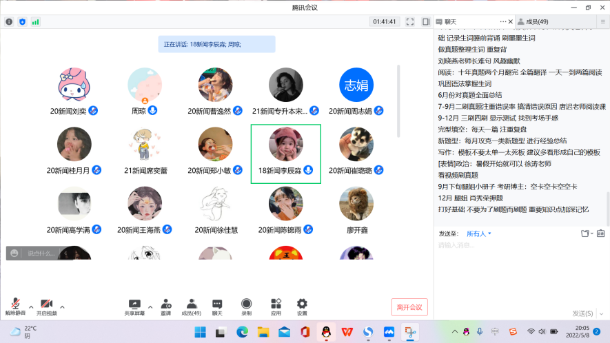 为帮助同学们明确考研目标,了解备考流程,掌握学习方法,365上市公司新闻学专业分别于4月24日、5月8日举办两场线上考研经验交流会。该院有考研意愿的150余名学生报名参会。