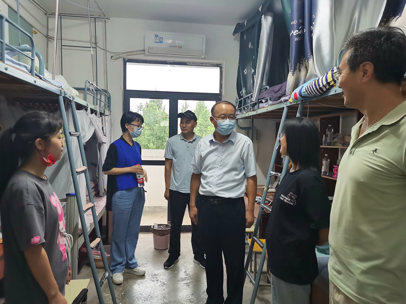 当日下午,学院党政班子率辅导员走访新生宿舍,看望慰问各专业学生。详细询问学生的到校行程,关心同学们的适应状况,与同学们亲切交谈,叮嘱新生要遵守学校的日常管理,疫情防控意识不松懈,认真做好每天的健康汇报;要尽快熟悉所学专业,适应大学的学习和生活节奏。学院领导的慰问让新生们倍感温馨,他们表示会以积极向上的心态开启大学生活。