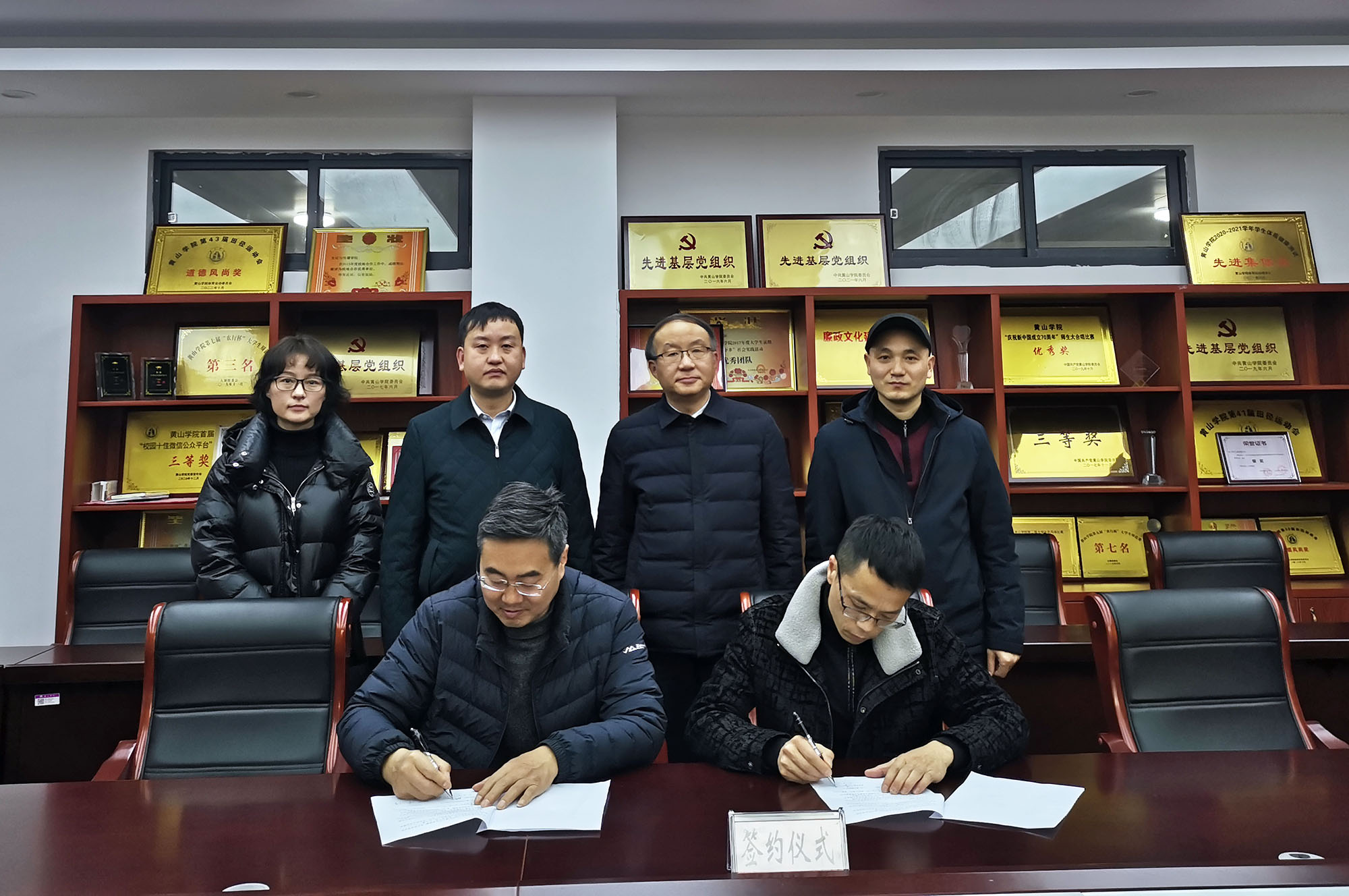 2月24日上午,365上市公司与黟县融媒体中心在文澜楼三楼会议室举行校媒合作签约仪式。黟县融媒体中心主任李仕清、副主任但建凯,365上市公司党政班子及新闻学教研室负责人参加签约仪式。