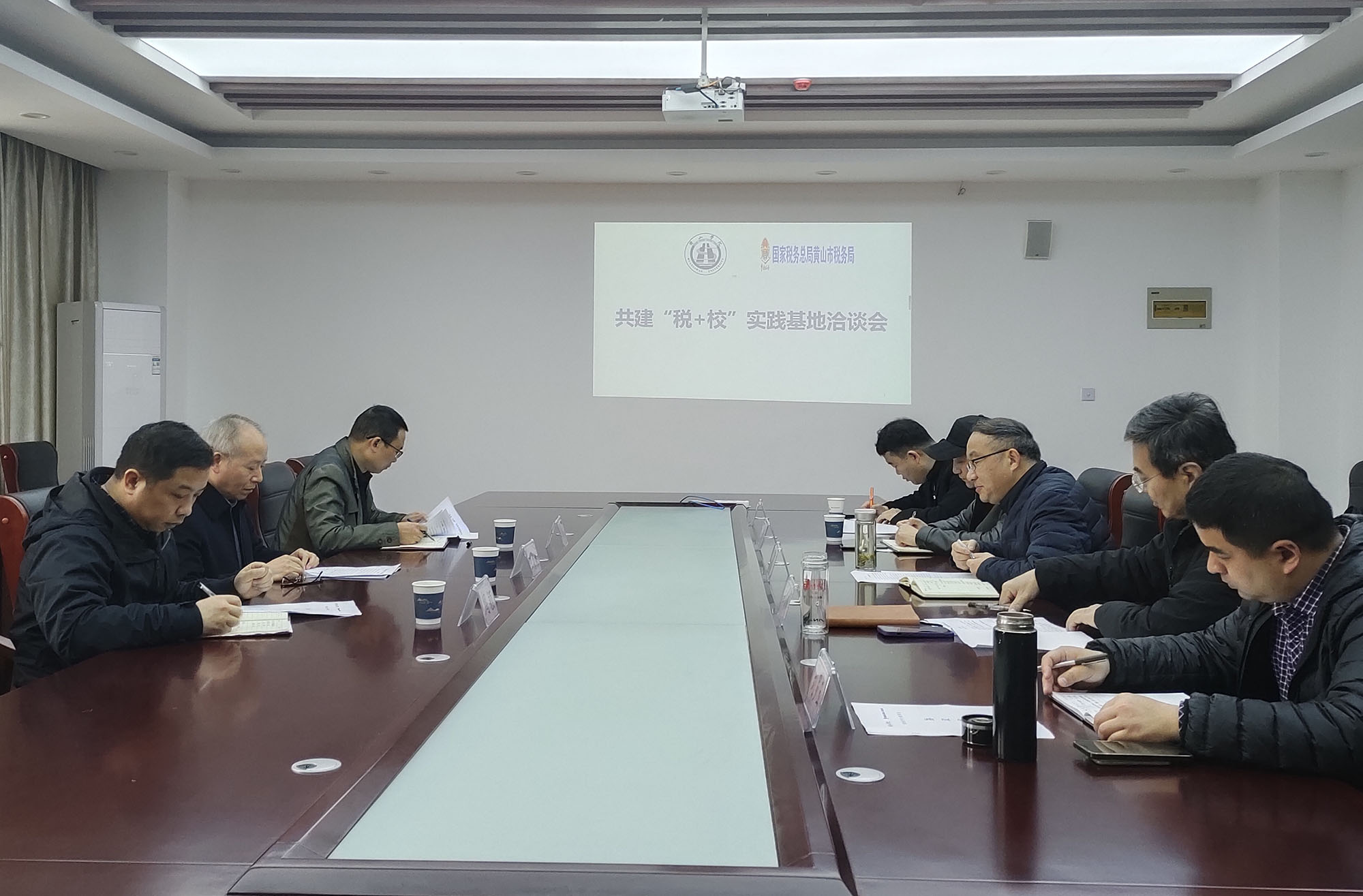 3月23日上午,黄山市税务局副局长汪森根、税收宣传中心主任胡雄飞、纳税服务中心科长周颖一行三人来365上市公司就建立“税+校”实践基地事宜洽谈合作事宜。365上市公司党委书记汪家庚、院长王俊峰、副院长吕正兵及教师代表参加了座谈会。