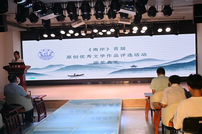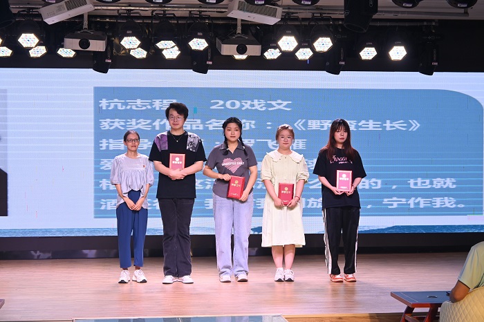 颁奖典礼在主持人热情洋溢的开场白中拉开了序幕。主持人首先对本次评选活动进行了简要的介绍和总结,本次活动的宗旨是对戏文专业《南岸》实训基地几年来阶段性成果总结,也是进一步激发学生创作热情,提升创作质量,同时促进师生共同发展。接下来由学院领导和老师分别上台宣布获奖学生名单并颁奖。在大家热情洋溢的掌声中,共有来自学院不同专业的十余名同学分别获得特别奖、一、二、三等奖和优秀作品奖。