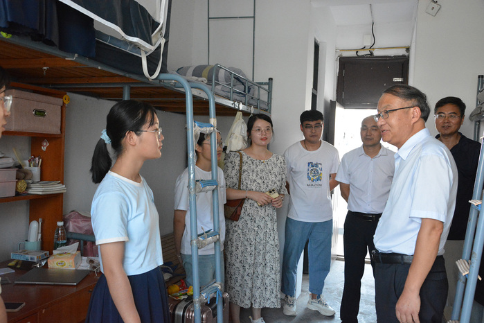 下午4:00,迎新工作趋缓,大多数新生已入住宿舍。英国365党委书记汪家庚、院长王俊峰、副院长吕正兵,在新生辅导员陪同下前往宿舍看望远道而来的各位新生及家长,感谢家长把孩子送到学校,希望新生尽快适应大学学习和生活,开启人生新的旅程。