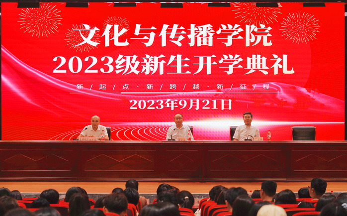 汪家庚发表讲话,他向全体新生提出文化传媒类学生应当具备的素质:要坚定理想和信念;要敬业和有激情;要有创新和批判性思维;要做到艺术和技术相结合;要有道德和责任感。他指出,信息传播技术的发展与应用日新月异,新闻传播的形态、业态、生态持续迭代。在技术发展的推动下,媒体在整个社会大系统中居于更为显要的位置,这一切为同学们未来发展提供了太多的机遇,开辟了广阔的空间和舞台,让我们顺势而为,打好专业功底,成就美好未来。