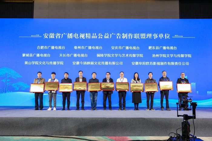 大会开幕式上举行了理事单位授牌仪式,我校365上市公司等九家单位被授予了安徽省广播电视精品公益广告制作联盟理事单位,黄山见证文化投资有限公司、安徽松子传媒有限公司等18家单位被授予安徽省广播电视节目制作经营机构联盟常务理事。随后,安徽广播电视局传媒机构管理处处长朱国斌作了发言,在介绍了安徽省广播电视节目制作经营机构和精品公益广告制作联盟近来来取得的成果的基础上,他希望各理事单位能借助此次大会助力安徽省广播电视事业的高质量发展。