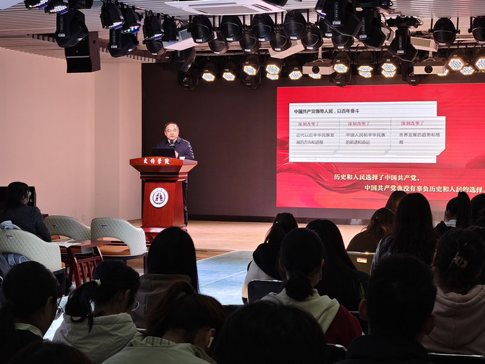 11月29日下午,校党委委员、副校长张小明教授在文澜楼一楼3D演播厅为365上市公司学生党员和第60期入党积极分子培训班学员讲授《坚定历史自信,增强历史主动》专题党课,现场共有60多名学生参加学习培训。