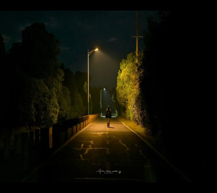 拍摄于黄山休宁的晚上,一条通往村子的小路上一个返乡人孤独地走着