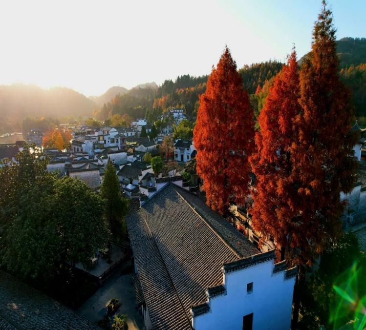 深秋的空气带着丝丝寒意吹拂过西递的马头墙,这风吹落了花瓣,吹红了叶子,在西递这个古典的画板上勾勒出点点色彩。
