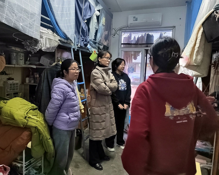 在走访检查过程中,检查组重点检查宿舍用电安全和卫生问题,领导老师向学生强调注重宿舍安全用电常识,严禁使用大功率和存在安全隐患电器,及时清理生活垃圾和废旧用品,定期检查、报修老旧线路和异常电器 ,宿舍成员要共同维持宿舍卫生,为个人的学习和生活营造良好、安全的生活环境。各位领导还就日常学习、宿舍安全等问题与同学们进行交流,提出有关注意事项和改进要求。