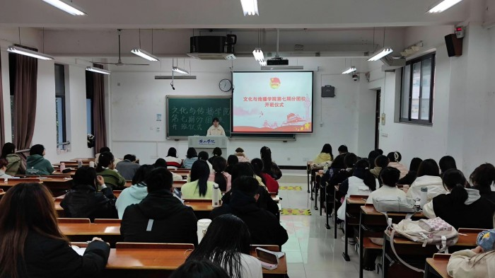 11月21日中午,第七期分团校开班仪式暨第一次课程在文渊楼1301举行,文传院团委副书记方婷婷主持开班仪式,以《担强国重任 做有为青年》为题鼓励参与课程的青年学生坚定理想信念,做新时代的好青年。开班仪式后,学生第二党支部教师许瑞为学员讲授《党团关系》,引领青年学生了解党团关系,坚定拥护跟随党的信念。