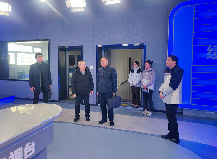 汪家庚一行参观了绩溪融媒体中心新落成并投入使用的融媒体采编大厅、演播厅、可视化广播直播间、节目制作中心等,与我院2015播音与主持专业毕业生、中心主持人陈祥进行交流,并邀请他常回母校为学弟学妹提供就业指导和专业交流。