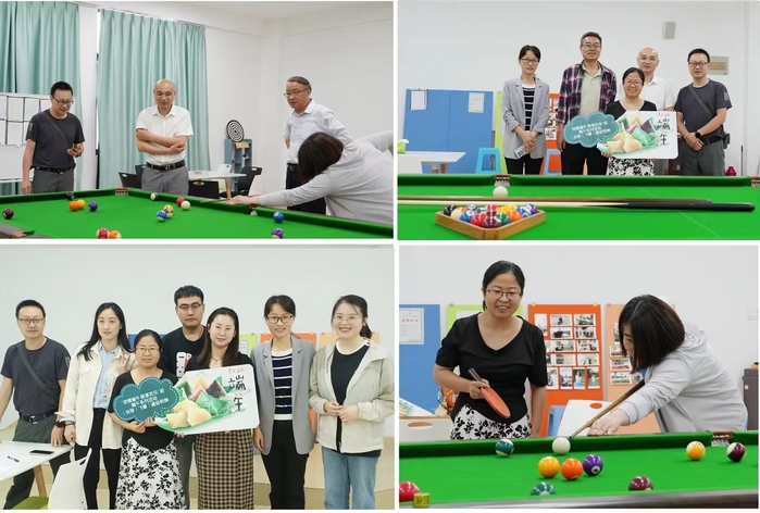 分工会准备了三个活动,台球争霸赛,按两分钟内打入球数多少排名;飞镖投掷比赛,3镖合计环数高低排名;通俗桥牌,随机组队,一局定胜负。大家积极参与,现场气氛热烈。