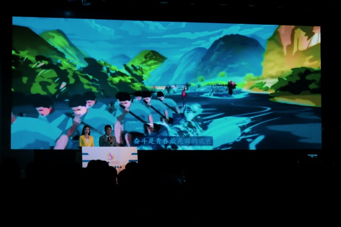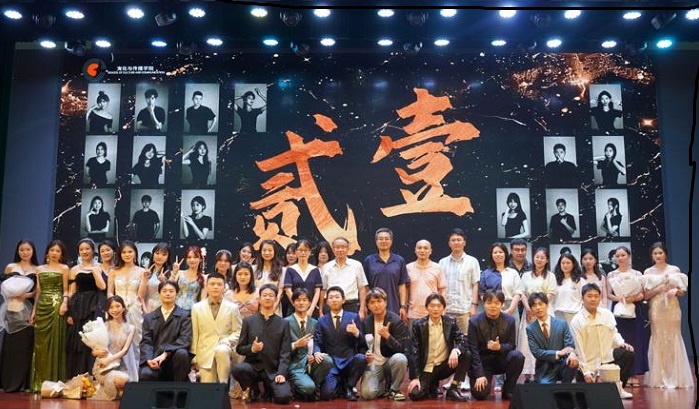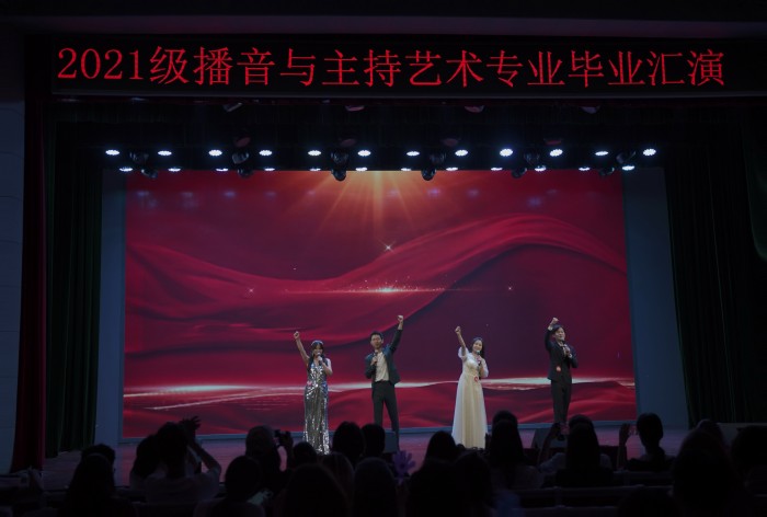 6月21日晚19时,在璀璨的灯光和热烈的掌声中,一场别开生面的专业汇演——《贰壹》在大学生活动中心大礼堂拉开帷幕。院党委书记汪家庚、党委副书记、院长王俊峰、党委副书记郑静、副院长吕正兵和播音与主持艺术专业教师、辅导员,以及学院学生近300百人观看了2021级播音与主持艺术专业学生们的精彩演出。