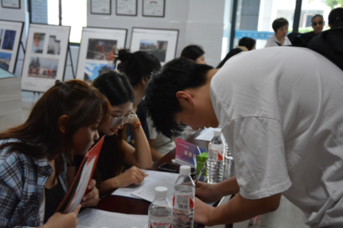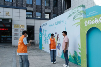 9月7日上午6:30,迎新工作人员在各接待点准备就绪、分工明确。身着橙色马甲的志愿者早早将文澜楼广场布置好。路旁指引牌、光鲜亮丽的迎新展板正在等着等待新生的到来。7时许,新生陆续到校,辅导员及志愿者按照流程快速核验材料、解答疑问,帮助新生完成报到,同时引导新生及家长在迎新展板前签名、帮助合影留念。当问到对孩子未来有什么期待时,广播电视编导专业新生李雅慧的父亲笑着说:“学校挺好的,希望孩子在这么好的环境可以好好学习,可以更好地锻炼自己独立生活的能力。”随后,李雅慧一家人在签名墙前留下合影。