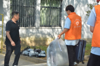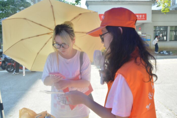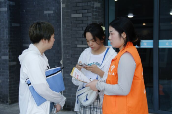 与此同时,宿舍楼区域的老生志愿者也在有条不紊的开展工作。面对咨询问题的学生和家长,志愿者耐心回答,做好指引工作;面对行李较多,不便搬运的新生,志愿者们及时伸出援手,尽显文传学子的热情。“学姐,请问文澜楼在哪里?”新生一家四口驻足服务台咨询。“叔叔阿姨,你们在这休息一下,天气太热,我带学妹过去!”2023级戏剧影视文学专业钱可欣同学贴心安排家长坐下后,将新生带到文澜楼,完成报到。