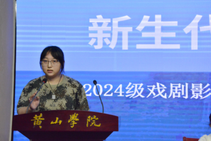 2024级戏剧影视文学专业王理萌作为新生代表发言,她表达了对大学生活的期待,表示要努力学习、充实自己,积极参与实践活动,培养良好的团队协作精神,注重个人品德修养,以满腔的热情和昂扬的斗志,创造属于自己的辉煌。