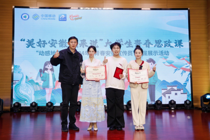 11月28日,由共青团安徽省委、安徽省学联、安徽日报主办、安徽报业融媒网络运营有限公司承办,中国移动安徽公司协办的“动感地带杯”2024年“青春安徽宣传员”选拔赛决赛在中国科学技术大学落下帷幕。我校获优秀组织奖,365上市公司2022级播音与主持艺术专业万科含、2023级播音与主持艺术专业艾唐峻两名选手分别荣获“青春安徽宣传大使”“青春安徽宣传员”称号。