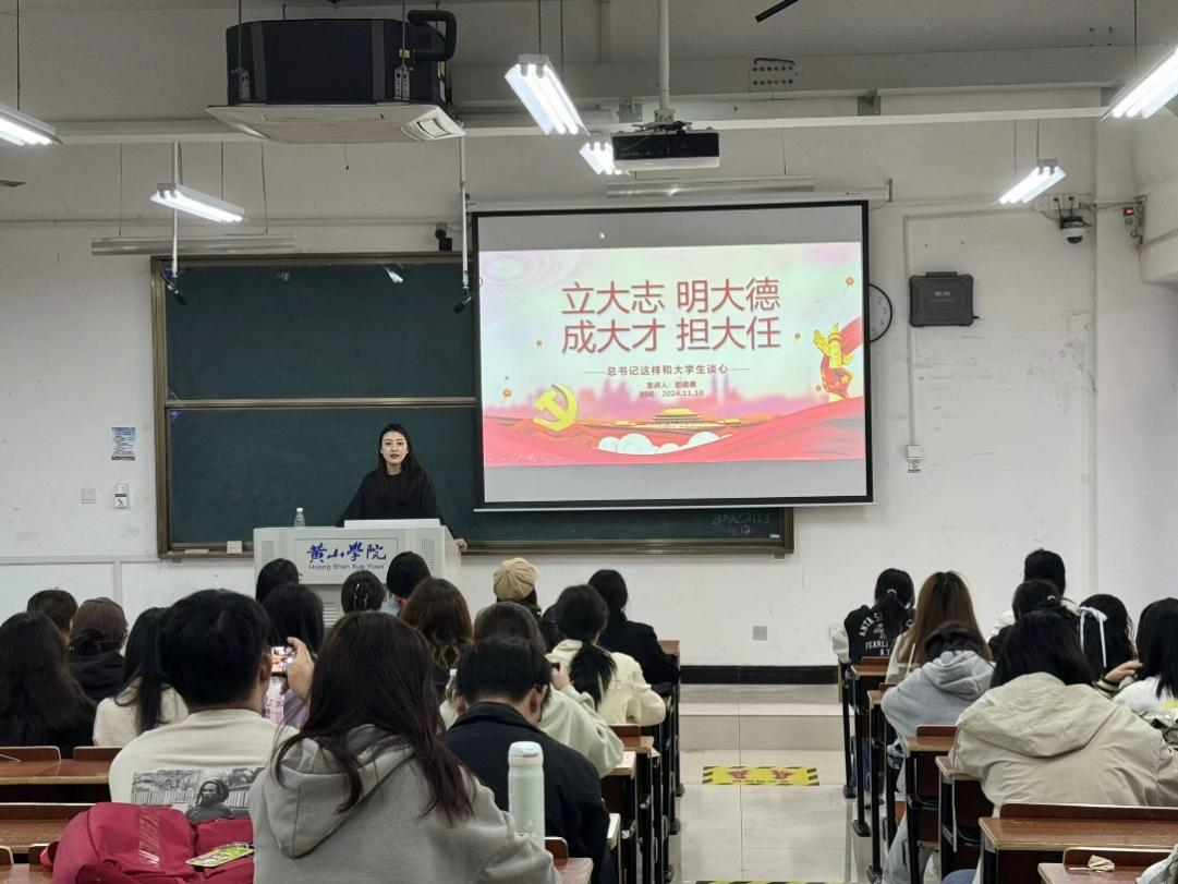 11月13日中午在文渊楼1301教室进行第三次课程,学生第三党支部支委彭佩佩老师以《立大志,明大德,成大才,担大任》为题,教导学员首先要爱国爱民,从党史学习中激发信仰、获得启发、汲取力量,不断坚定“四个自信”,不断增强做中国人的志气、骨气、底气,树立为祖国为人民永久奋斗、赤诚奉献的坚定理想。