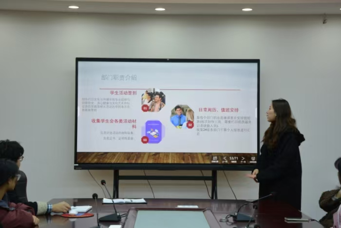 本次会议围绕2024-2025学年第一学期学生会的工作内容的开展。学生会各分属部门负责人围绕政治态度、道德品行、学习情况、工作成效、纪律作风等方面进行了全面汇报,总结了本学期的工作成果,提出了面临的问题,反思了部门及个人的不足并提出改进措施。学生会主席胡太红代表主席团对本学期的工作进行汇报,阐述了本学期学生会的主要工作内容及面临的问题,对各部门今后的工作提出希望。她表示,未来一年365上市公司学生会将继续做好本职工作,始终坚持为同学服务的宗旨,为文传院的建设做出更多的贡献。