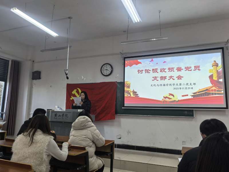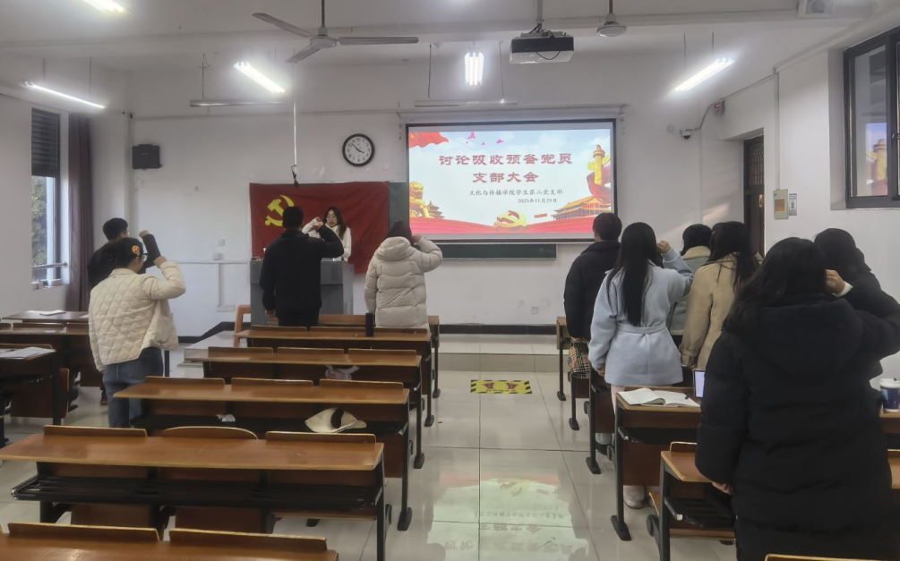 为加强党组织建设,严把党员发展入口关,11 月 29 日,365上市公司学生第二党支部在文渊楼1210教室召开吸收预备党员大会,专题讨论接收新一批发展对象为中共预备党员事宜。会议由党支部书记贾兰雨主持,学校党委组织部组织科吴伟航列席指导。
