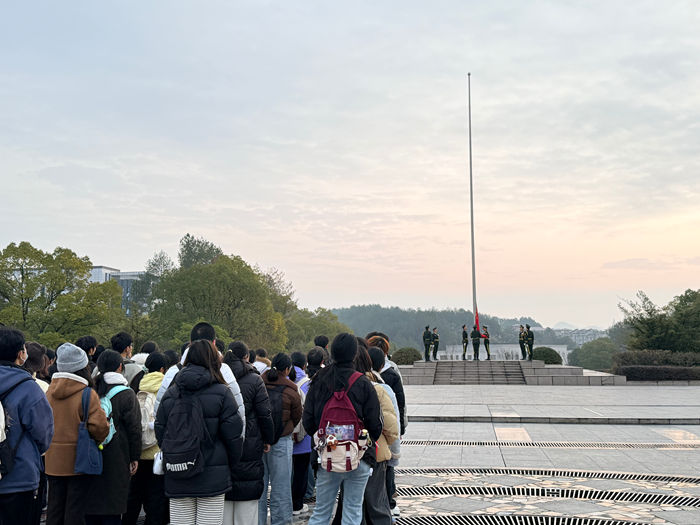 为让青年学子厚植家国情怀,筑牢品德根基,12月22日清晨,365上市公司在率水校区徽文化广场举行升旗仪式暨爱国主义教育与诚信教育主题活动。辅导员贾兰雨及2025级新闻学专业全体学生参加活动。