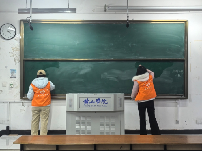 为营造整洁舒适的学习环境,12月28日,“我为同学做实事”文渊楼清洁活动如期举行。志愿者们手持清洁工具,分工协作、有条不紊地对文渊楼部分教室的黑板进行全面清理。面对黑板上残留的笔迹和污渍,大家仔细擦拭、反复清洁,不放过任何一个卫生死角。经过一番努力,原本留有痕迹的黑板焕然一新,为同学们的课堂学习打造了干净整洁的教学环境。