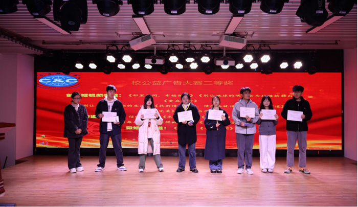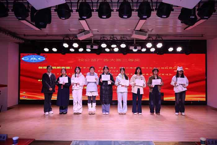 创意短视频赛道《选择》《“借”来的五分钟》《不能说的秘密》《耳朵的温度》《消失的午餐》《净水爱民生,健康暖新村》《爱不“负”价》《反诈宣传》,AIGC赛道《保护环境》《青春践初心,微光暖方寸》《十年青山——绘就生态长卷》等11部作品获英国365上市公司第六届公益广告大赛优秀奖。365上市公司播音与主持艺术专业专任教师赵明丽为获奖同学颁奖。