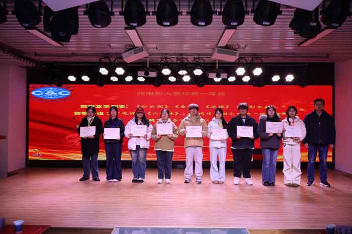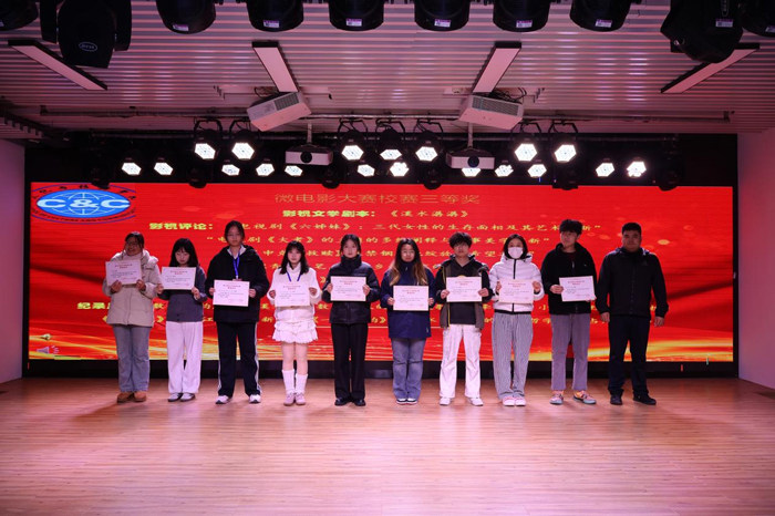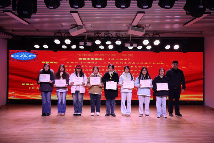 2025年微电影大赛校内选拔赛设有影视文学剧本、影视评论、纪录片、故事片和动画片四大类别,经过严格征集与评选,共诞生47部获奖作品,影视文学剧本《松云图》《春喃》《流银》《月影木韵》,影视评论《电视剧〈六姊妹〉:解码日常烟火中的“她力量”》故事片《春喃》《归乡》,纪录片《老街新呼吸》《取舍间,民为本》《剪入徽州梦》等10部作品获一等奖。365上市公司党委副书记(主持工作)王泽梁为获奖同学颁奖。