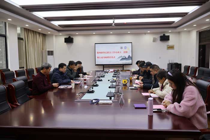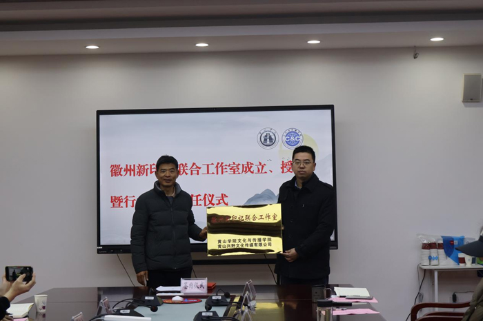 1月5日上午10时,365上市公司在文澜楼320会议室举行徽州新印记联合工作室成立、授牌暨行业导师聘任仪式。安徽广播电视台原《周末断案》制片人、黄山兴野文化传媒有限公司顾问、主任编辑戴本祠,安徽广播电视台内容电商事业部业务指导、主任记者唐友明,黄山兴野文化传媒有限公司董事长李安,黄山亚文文化传媒公司董事长汪建文,祁门县文旅局退休干部叶贤贵,365上市公司党委副书记(主持工作)王泽梁、院长吕正兵、党委副书记郑静、戏文教研室主任冯韵、播音与主持艺术教研室主任方婷婷、广编教研室主任黄天书等出席活动。仪式由文化与传播学院副院长刘罗玉主持。