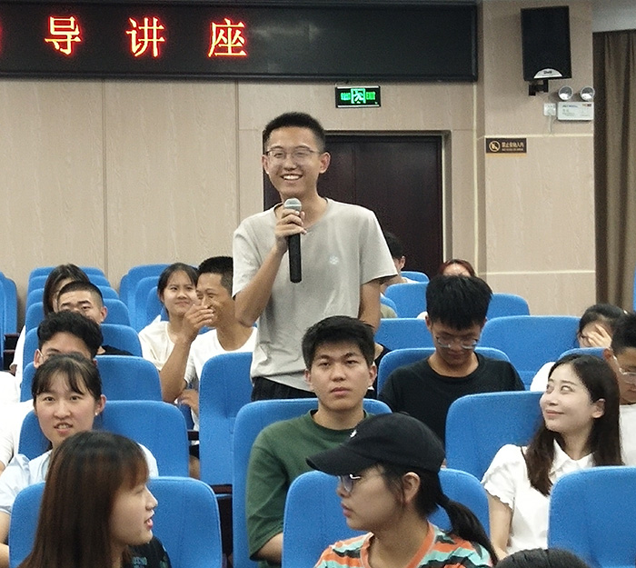 在互动环节中,同学们踊跃提问,向胡晓春询问有关他日常守松过程中工作、生活以及大学生就业方面的问题,胡晓春一一解答。