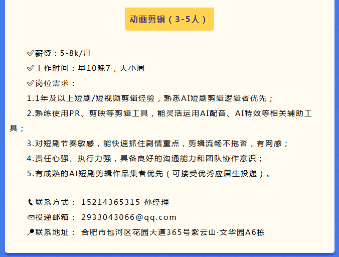 合肥市动绘新序影视文化传媒有限公司招聘信息