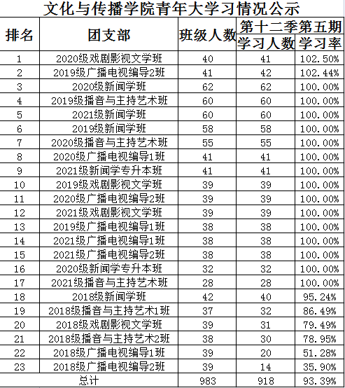 各团支部第十二季第五期“青年大学习”公示