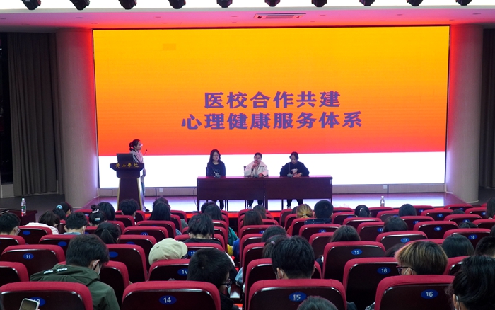 在随后开始的《走进心理咨询中心的101个理由》讲座中,张金爱对女生出现抑郁障碍的情况做了精准剖析,判断出解决抑郁障碍的命脉所在,为学生解决抑郁情绪提供了良好的借鉴意义;胡小侠凭借自身丰富的辅导员工作经验,向学生讲述了自卑、缺乏自信等常见心理问题的具体表现,鼓励同学们树立健康正确的三观,为个人生活增添亮丽的色彩;徐宏图则就大学生普遍关注的考前焦虑作分享,从根本上定位了考前焦虑的产生源头,呼吁同学们在日常学习生活中养成良好学习习惯,以科学的态度面对焦虑,既不要过分“内卷”、也不要放任“躺平”。三位嘉宾从不同领域展示了学生走进心理咨询室的理由,让“心理咨询”这一概念在学生心中不再陌生,获得了在场同学的一致好评。讲座最后,在场学生进行了自由提问。