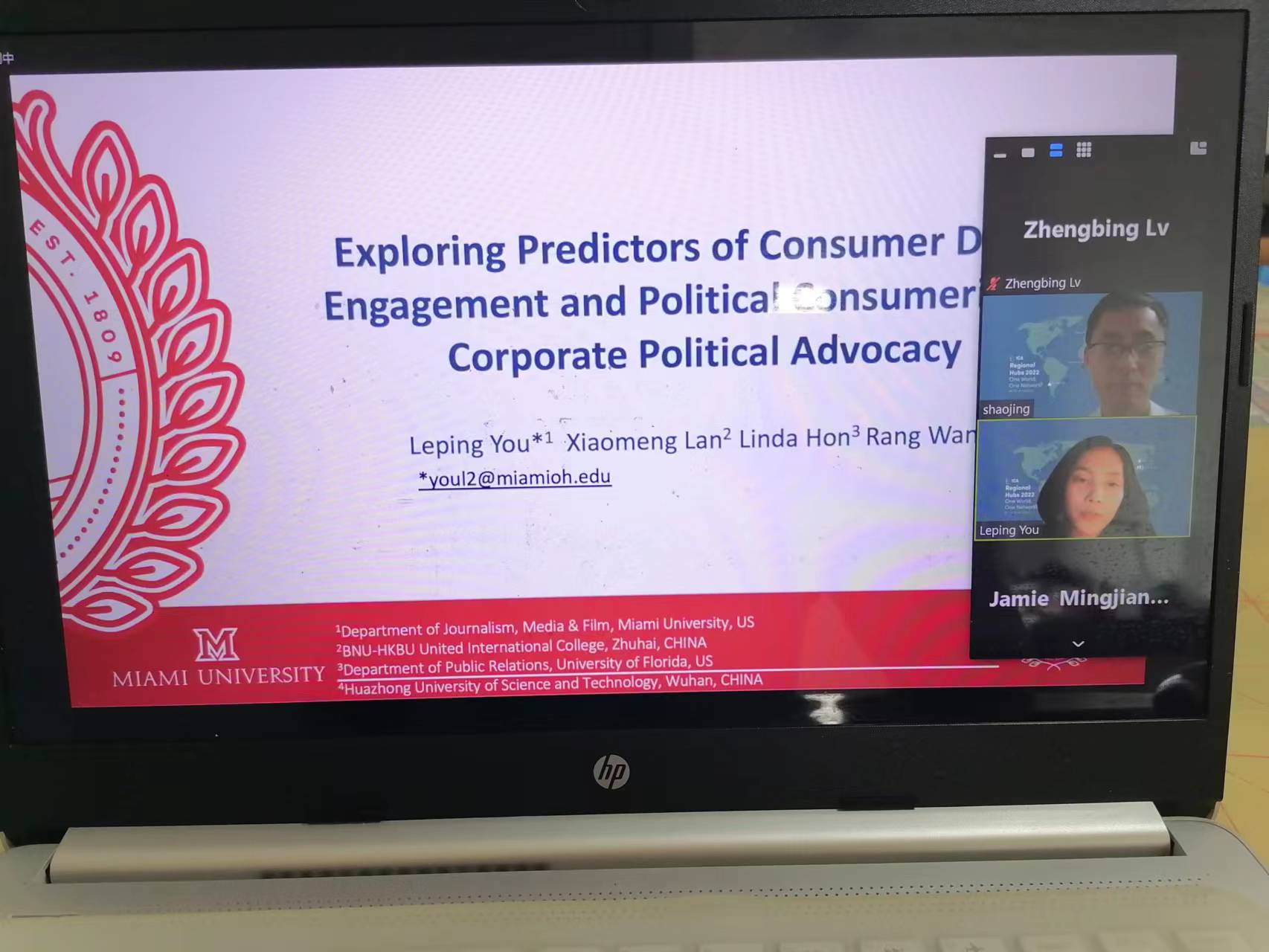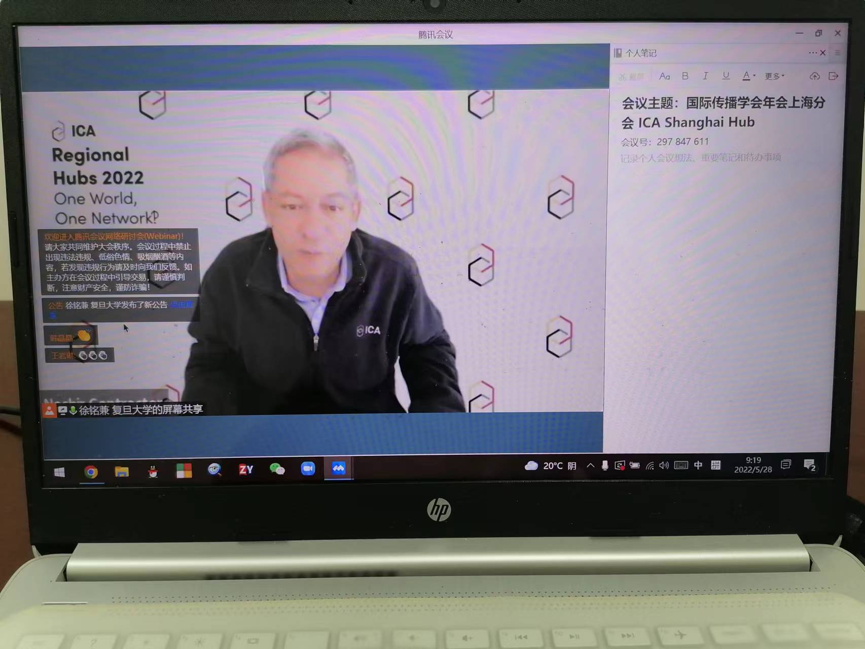 5月28日至29日,国际传播学会(ICA)年会上海分会分别通过腾讯会议和Zoom举行主题为“One World, One Network!?”的云端学术会议。来自复旦大学、中国人民大学、华中科技大学、暨南大学、迈阿密大学、佛罗里达大学、加利福尼亚大学洛杉矶分校、加利福尼亚大学戴维斯分校、印第安纳大学等国内外高校的百余名专家、博士生参会,我院副教授吕正兵受邀参加会议。