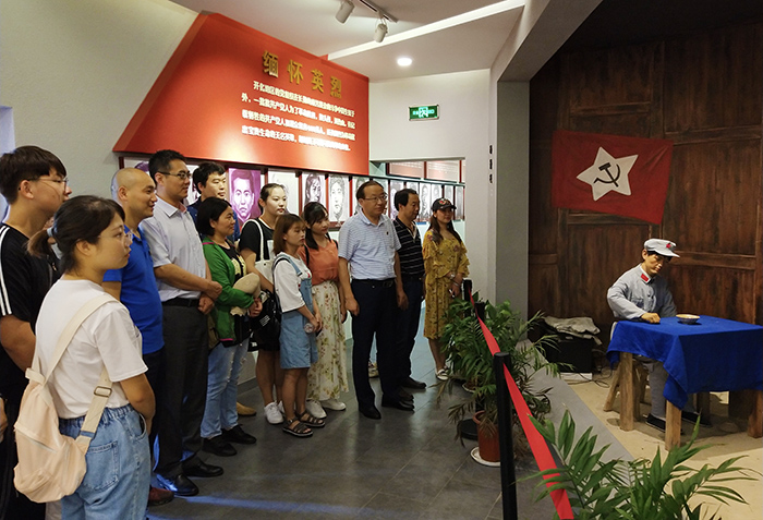 在革命前辈们工作过的特委旧址陈列室,党员们高举拳头,面向鲜红的党旗庄严宣誓,重温入党誓词,表达了不忘初心,矢志不渝跟党走的信念。特委之行给文传师生党员上了一堂生动深刻的党史党课。